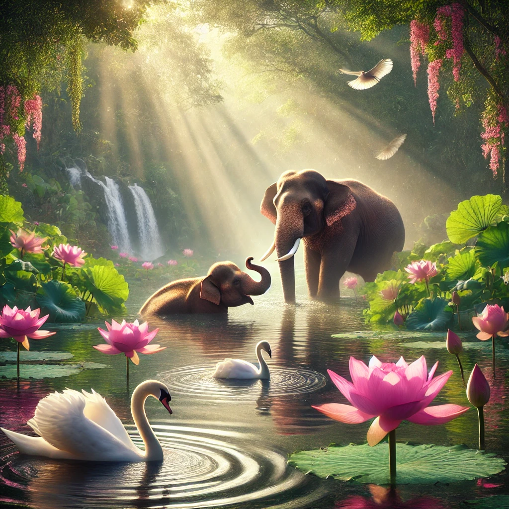 ప్రకృతి ఎప్పుడూ తన అందాలతో మనల్ని మంత్రముగ్ధుల్ని చేస్తూనే ఉంటుంది. ముఖ్యంగా, స్వచ్ఛమైన ప్రకృతి ఒడిలో విహరించడం అనేది ఒక అనిర్వచనీయమైన అనుభూతి. అలాంటి ఒక అనుభూతినే మనకి ఈ పద్యాల ద్వారా అందిస్తున్నారు కవులు. గజేంద్రుడు మరియు అతని పరివారం ఒక అందమైన తామర కొలనును చూసినప్పుడు వారి పంచేంద్రియాలు పొందిన పరవశాన్ని ఈ పద్యాలు మన కళ్ళముందు ఉంచుతాయి.