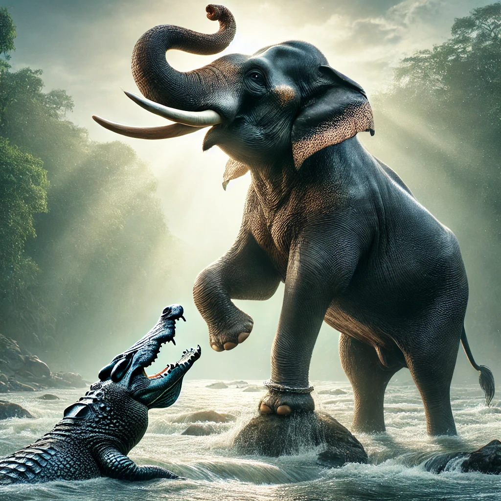 ప్రతీ మనిషి జీవితంలో ఒక గజేంద్రుడు. సవాళ్లు, సమస్యలు, కష్టాలు – ఇవన్నీ ఒక మొసలి లాగా మనల్ని పట్టుకుని వదలకుండా ఉంటాయి. కానీ మన ధైర్యం, విశ్వాసం, పట్టుదల మనల్ని ఆ అంధకార నుండి బయటపడేసే శక్తిగా మారుతుంది.
