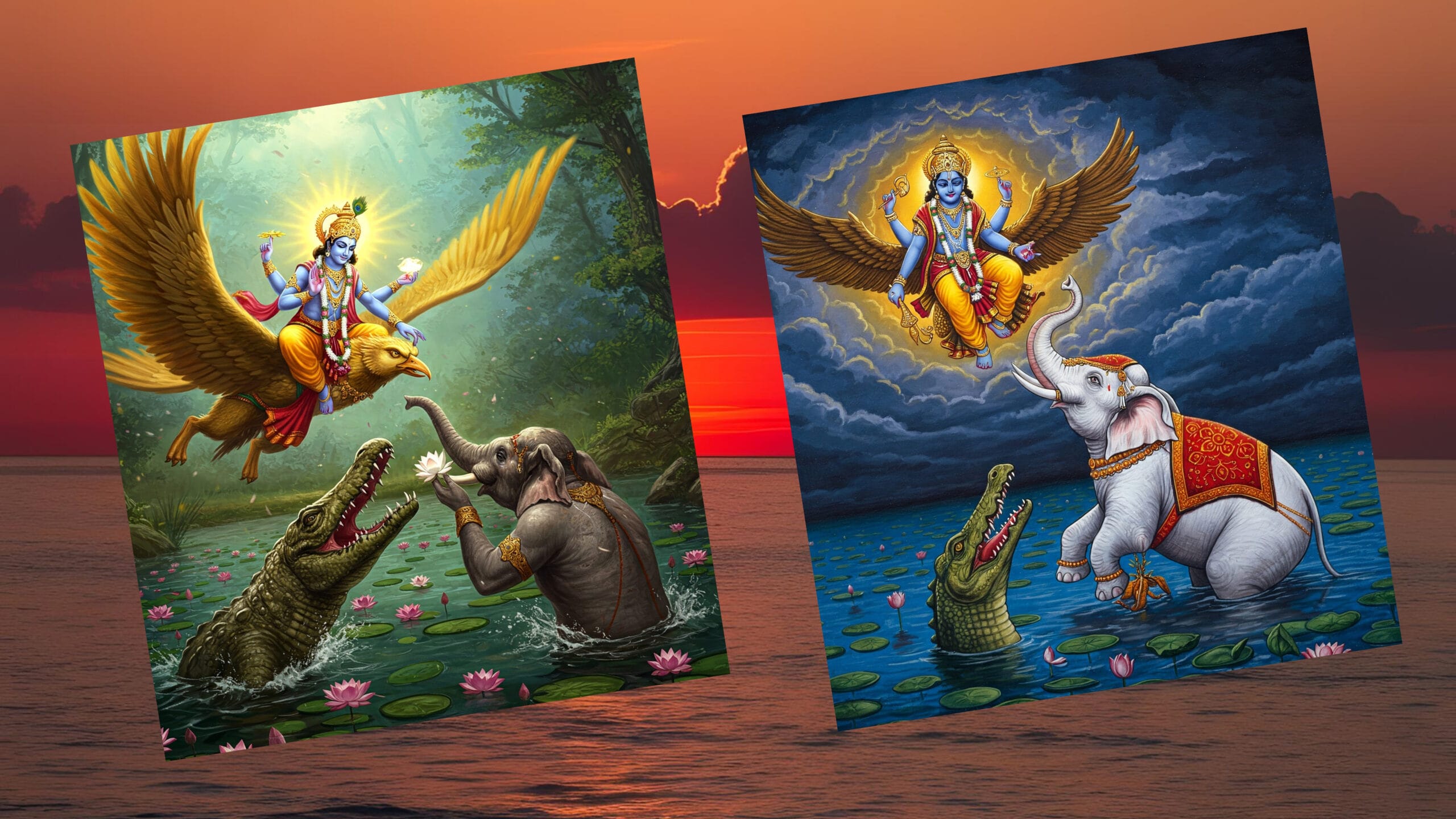 గజేంద్రుడు – ఒక ఏనుగు. కానీ అతని హృదయంలో నిండినది ప్రగాఢమైన భక్తి. తన గజరూపంలో ఉన్నప్పటికీ, అతడు తన చివరి శ్వాసలోనూ నారాయణుడినే వేడుకున్నాడు.