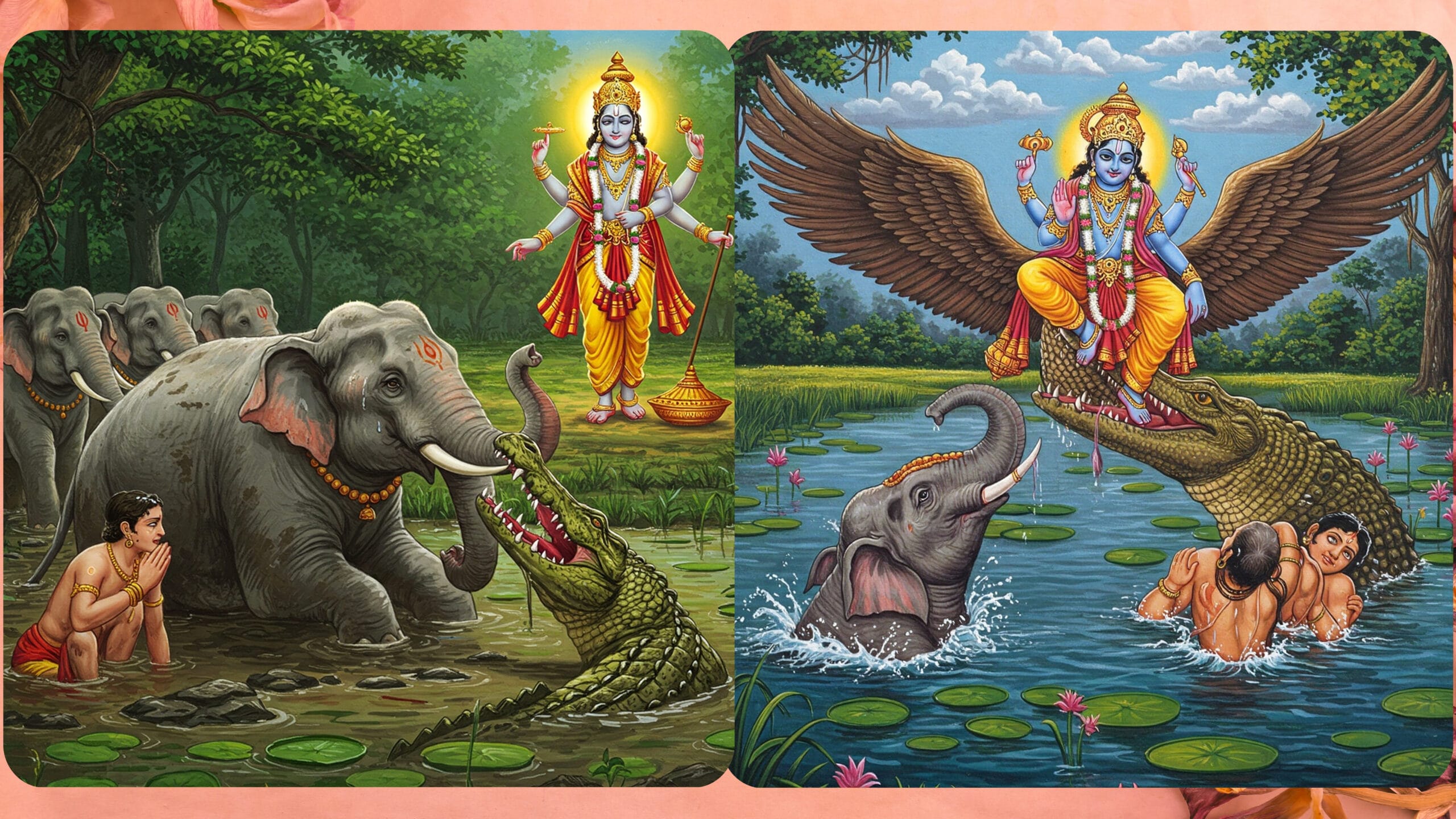 పూర్వజన్మలో ఓ రాజుగా జీవించిన గజేంద్రుడు, తన తాపస పుణ్యఫలం కారణంగా ఏనుగు జన్మ ఎత్తాడు. అయితే, ఇంద్రియ భోగాలలో మునిగి తేలుతూ, అహంకారంతో జీవనం సాగిస్తున్నాడు. ఒకరోజు సరస్సులో స్నానం చేస్తుండగా, అతనికి ఒక మొసలితో భీకరమైన పోరాటం ఎదురైంది. ఇది కేవలం రెండు జీవుల మధ్య జరిగిన పోరాటం కాదు – జీవితంపై, అహంకారంపై, నిస్సహాయతపై జరిగిన యుద్ధం అది.