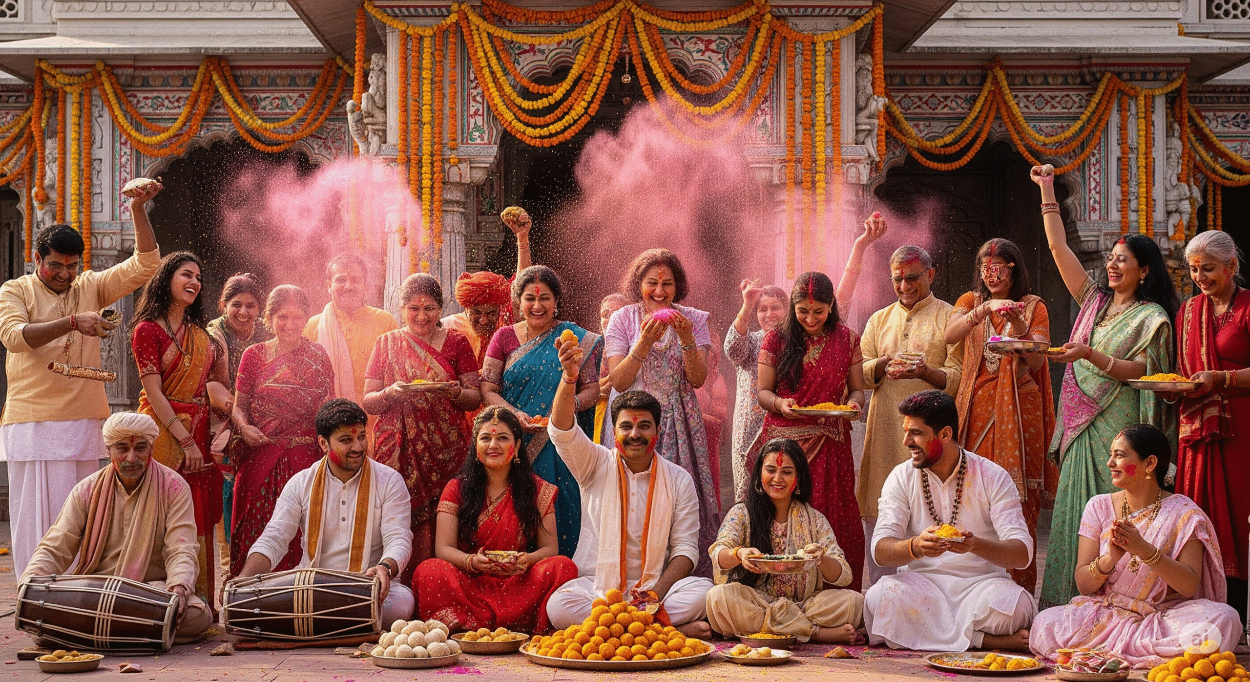 హోలీ, రంగుల పండుగ, భారతదేశంలో అత్యంత ప్రసిద్ధమైన మరియు ఉల్లాసభరితమైన పండుగలలో ఒకటి. ఇది ఫాల్గుణ మాసంలోని పౌర్ణమి రోజున వస్తుంది, సాధారణంగా ఫిబ్రవరి చివరి నుండి మార్చి మధ్య వరకు వసంత రుతువు ప్రారంభాన్ని సూచిస్తుంది. ఈ పండుగ ఉత్తర భారతదేశంలో అత్యంత వైభవంగా జరుపుకుంటారు, కానీ భారతదేశంలోని ఇతర ప్రాంతాలలో కూడా దీనికి విశేష ప్రాధాన్యత ఉంది.