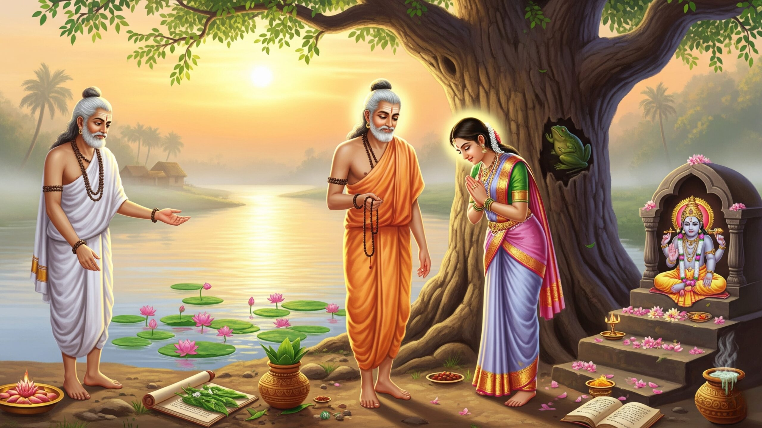 మునిశ్రేష్ఠా! నా జన్మస్థానము గోదావరి నదికి సమీపమందున్న ఒక చిన్న గ్రామము. నా తండ్రి హరిశర్మ. నా పేరు మంజుల. నా వివాహము కావేరీ తీర్థ వాసియగు జ్ఞానానందుడుతో జరిగింది. అతను దైవభక్తుడు, జ్ఞాని, నిగర్వి. వివాహానంతరం నేను అతని వెంట వెళ్లాను.