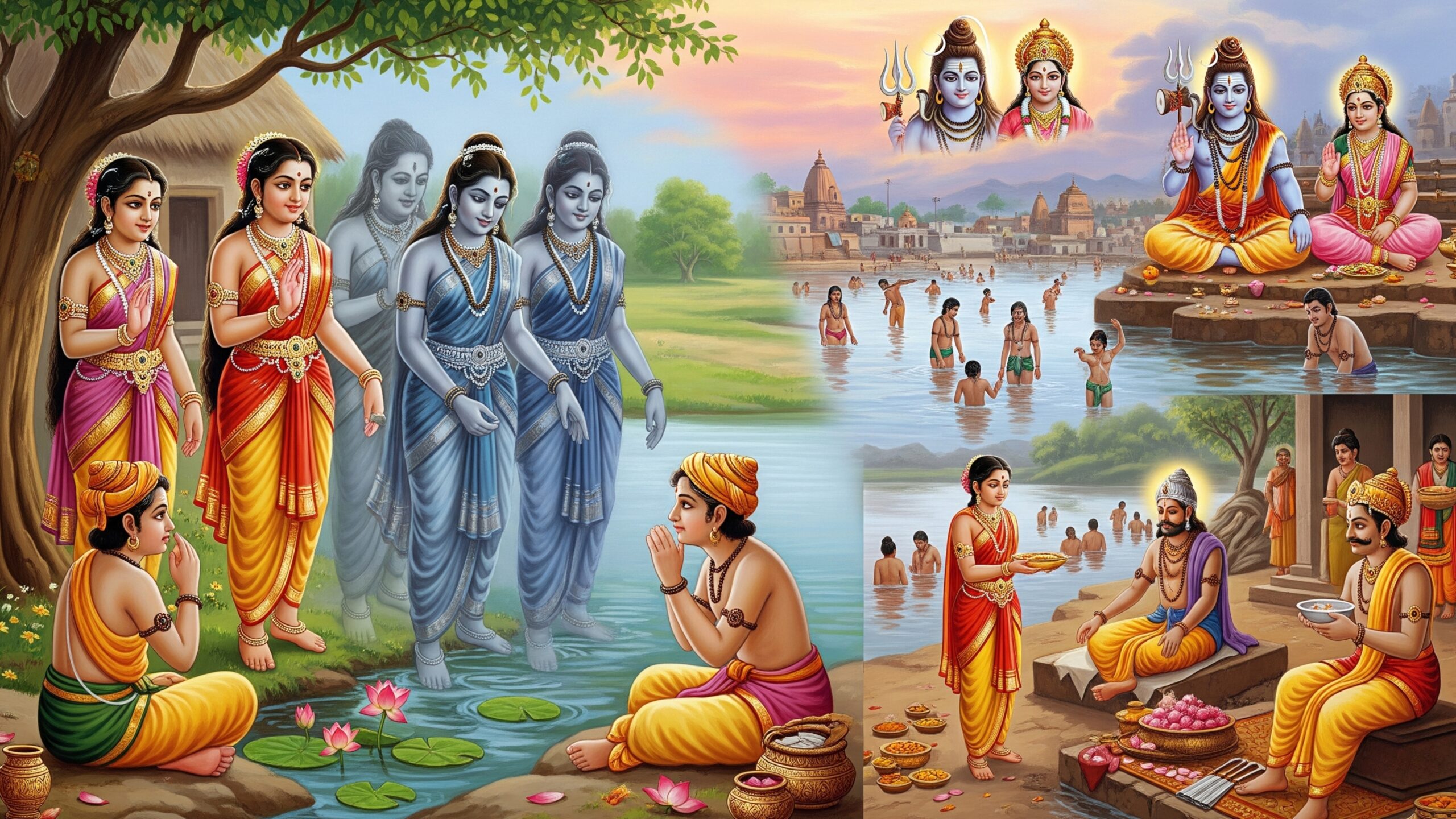 ఒకానొకప్పుడు మగధ రాజ్యంలో పురోహిత వృత్తిని అవలంబిస్తూ నలుగురు బ్రాహ్మణులు ఉండేవారు. వారికి యుక్త వయస్సులో ఉన్న నలుగురు కుమార్తెలు ఉన్నారు. మాఘ స్నానం యొక్క ప్రాముఖ్యతను తెలియజేసే ఈ కథ, పాప ప్రక్షాళన కోసం మాఘమాసంలో గయలో స్నానం చేయడం యొక్క విశిష్టతను వివరిస్తుంది.
