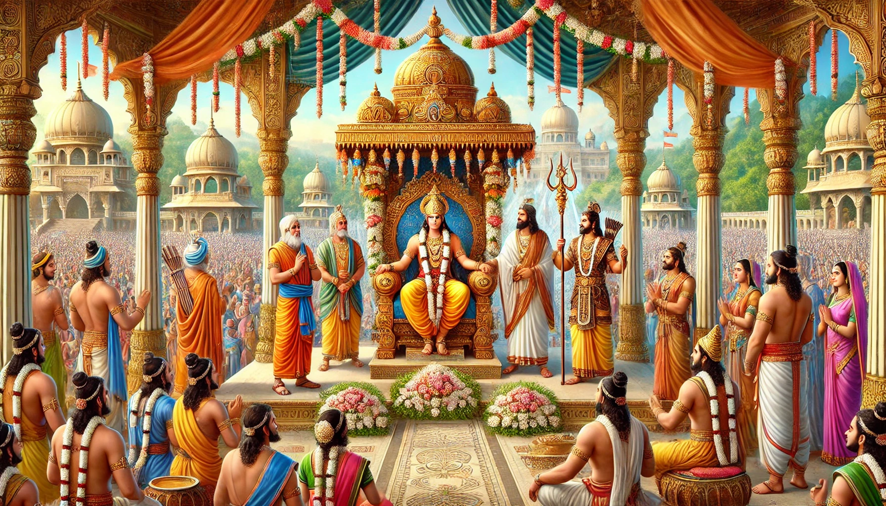 పట్టణ ప్రజలంతా ఆనందోత్సాహాలలో మునిగిపోయారు. అయోధ్యా నగరం సంబరాలతో పండుగ వాతావరణంలో తేలియాడింది.